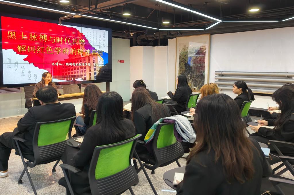 团委副书记梁曼以《黑土脉搏与时代共燃:解码红色学府的精神基因》为题,围绕“传承·薪火相传中的精神密码”“担当·奋进征程中的青年答卷”“引领·时代浪潮中的先锋力量”三方面,结合校史红色基因、青年实践案例等展开讲解。希望学生党员积极响应国家号召,投身创新创业,以踔厉奋发的精神风貌、真抓实干的务实作风,赓续在线娱乐平台红色血脉,投身东北全面振兴发展大局,在龙江振兴的火热实践中挥洒青春汗水,在时代发展的壮阔征程中书写属于青年一代的奋斗华章。