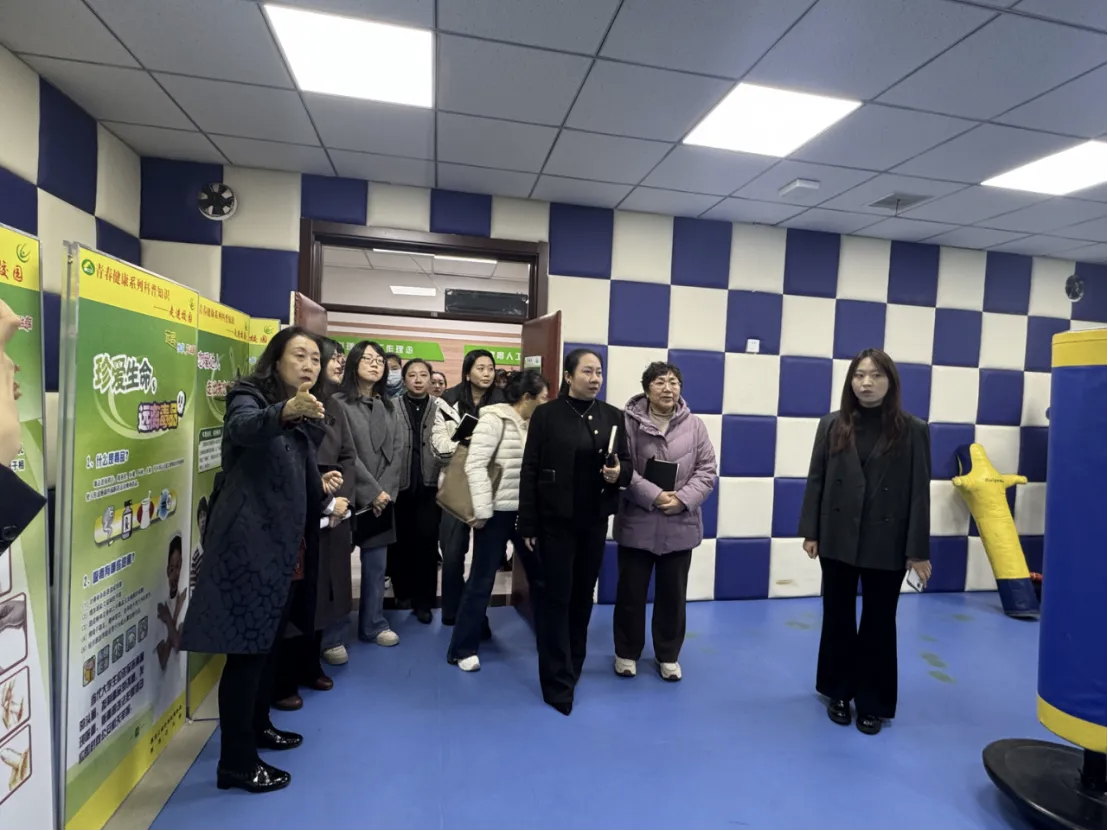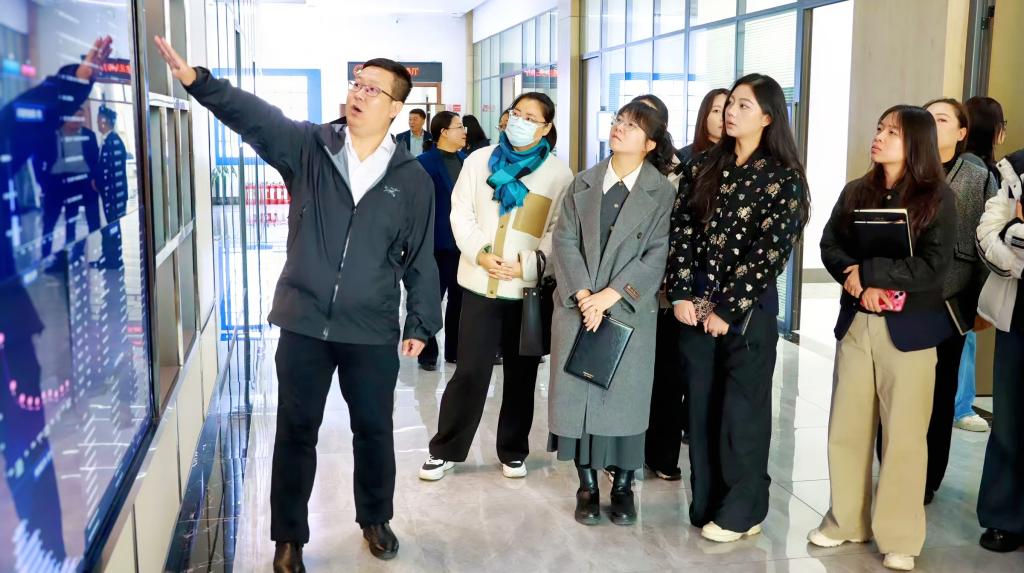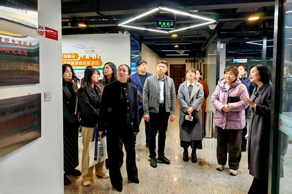 在产学研教育基地参观环节,与会成员实地体验了“三位一体”协同育人体系。该体系贯通“顶层设计—中层教学—基层实践”,打破传统育人壁垒,构建起分层实施、交叉融合的一体化培养新格局。在心理健康教育中心,李巾英主任引导调研团依次参观沙盘治疗室、情绪宣泄室等功能区域,详细介绍了个体心理咨询、心理测评等服务内容,展现了学生心理健康教育方面的专业支持体系。在大学生就业指导中心,就业指导部于航老师介绍了以“课、赛、咨询”为一体化的就业指导体系,重点演示了职业生涯咨询特色工作室的8个实验室。在师生创客中心,院长闫隽向与会人员展示了学生创业团队的运行机制、已孵化项目成果,以及学校为创业项目配备的导师资源与评审支持机制。