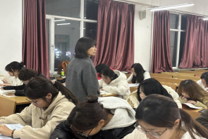 党委书记綦明霞老师,副书记屈广宁老师,辅导员王馨莹、梁曼、王冠琪老师深入晚自习现场,查看学习情况,与同学们亲切交流。